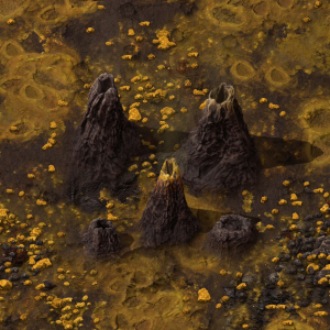 烟囱口是在祝融星上自然生成的一种地形,通常位于硫酸喷泉附近。与岩石类似,它们是玩家移动和建设的障碍。